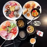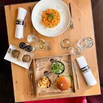 Onze kamer was goed gepland en zeer net. Het restaurant was prachtig, het had koude gerechten. In het algemeen was de service ook perfect. Leuk om een gratis parkeergelegenheid te hebben.